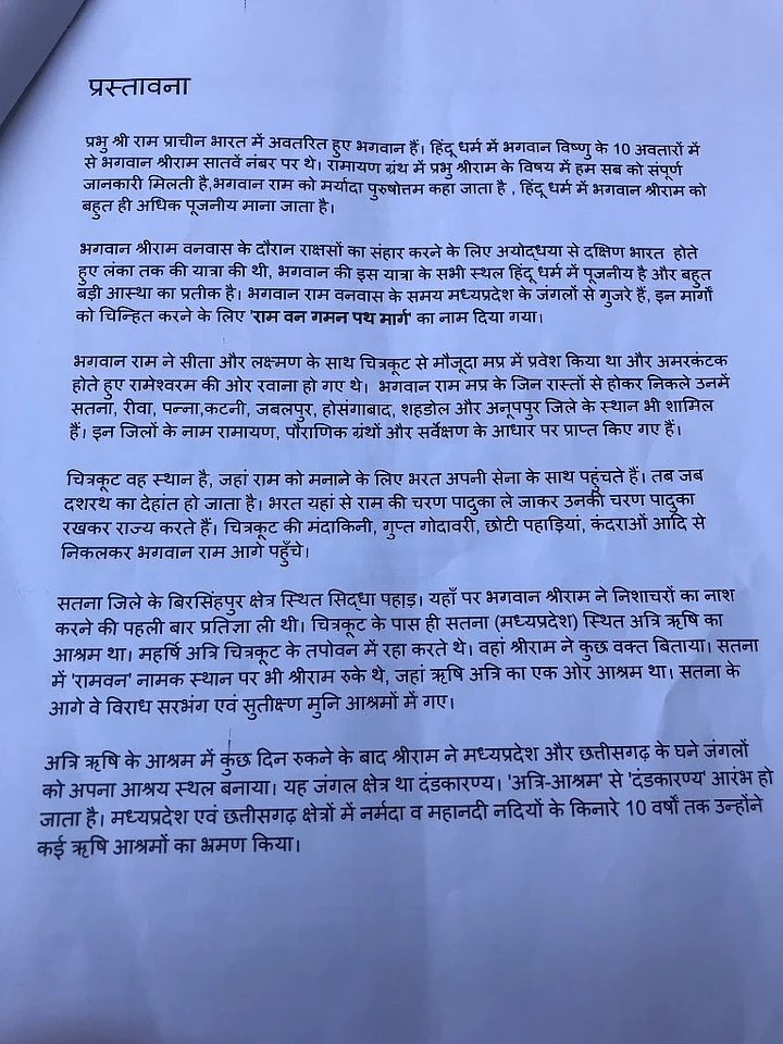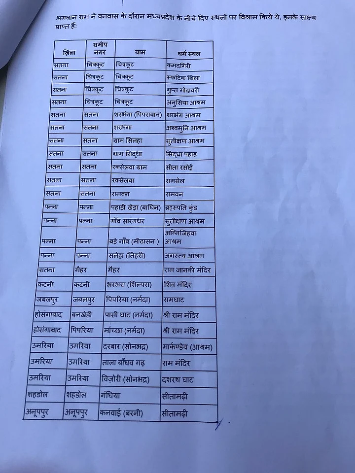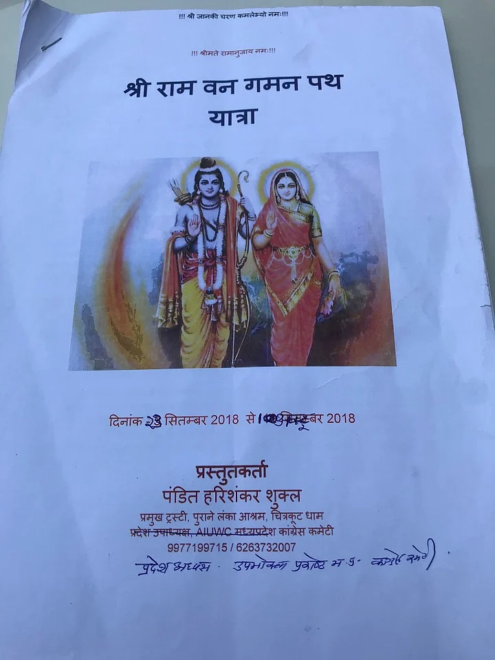 At a press conference on 13 September at the Congress’s state headquarters in Bhopal, Spokesperson Shobha Oza introduced Pandit Harishankar Shukla as the head of a 33-member committee called Ram Van Gaman Path Yatra Samiti that will steer the 820 kilometer yatra touching more than 30 places of religious importance.