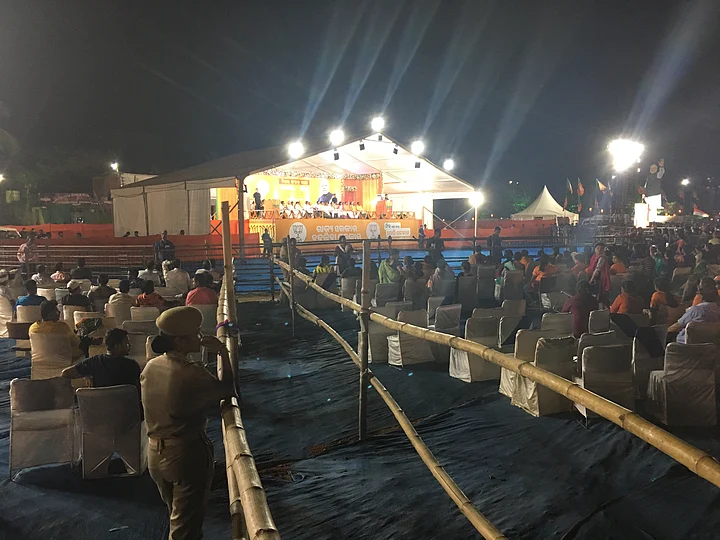Hundreds of chairs at the venue lay vacant while PM Narendra Modi addressed a rally in Bhubaneswar’s Baramunda ground on 16 April.