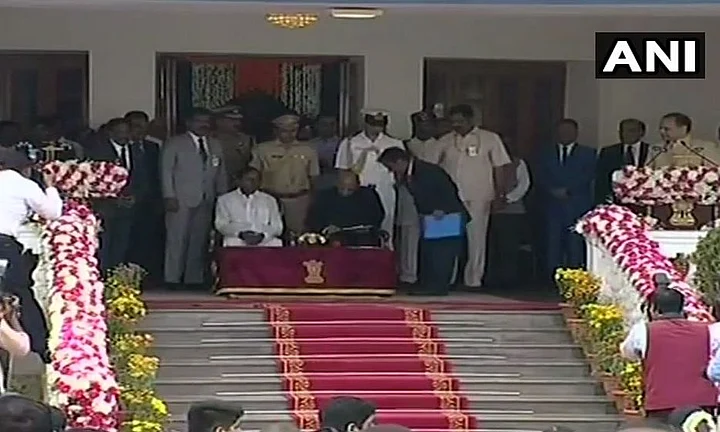K Chandrasekhar Rao took oath as the Telangana chief minister at Raj Bhavan on Thursday, 13 December.