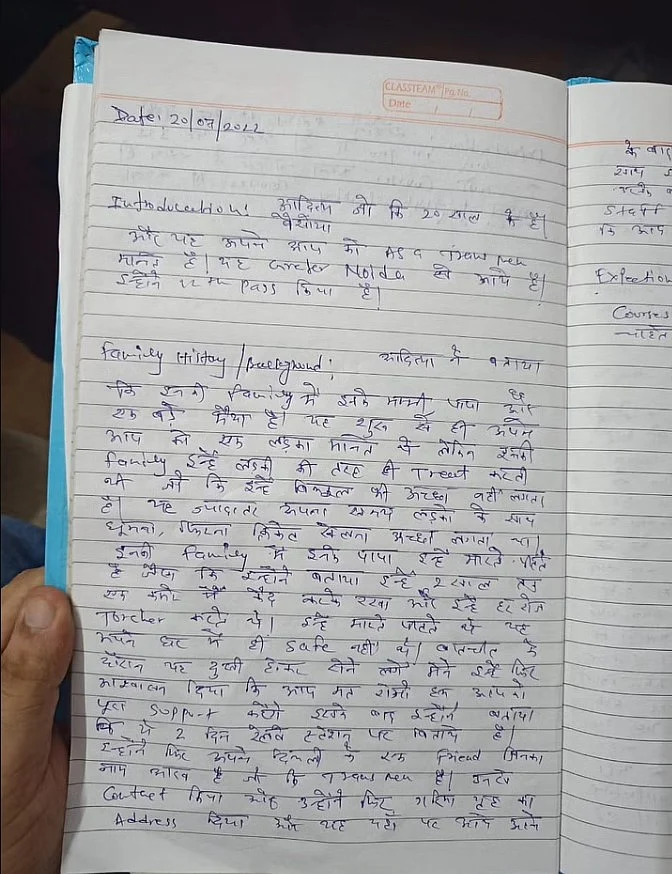 Five police officials, including a woman constable, opened the gate of the Garima Greh without giving a reason. According to Bela, after going in, the police said that Aditya's family had lodged a missing person complaint at the Badalpur police station in Gautam Buddha Nagar and that they were only there to record Aditya's statement.