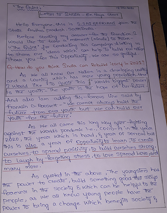 (On the occasion of Republic Day, The Quint relaunches its campaign ‘Letter to India – Ek Naya Start’ and invites readers to send in suggestions for rebuilding India after a tough 2020.