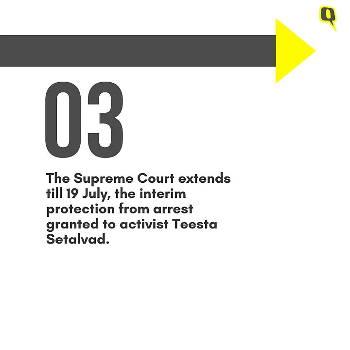 The Supreme Court extended till 19 July the interim protection from arrest granted to activist Teesta Setalvad in a case against her for allegedly fabricating documents to implicate government functionaries connected to the 2002 Gujarat riots.