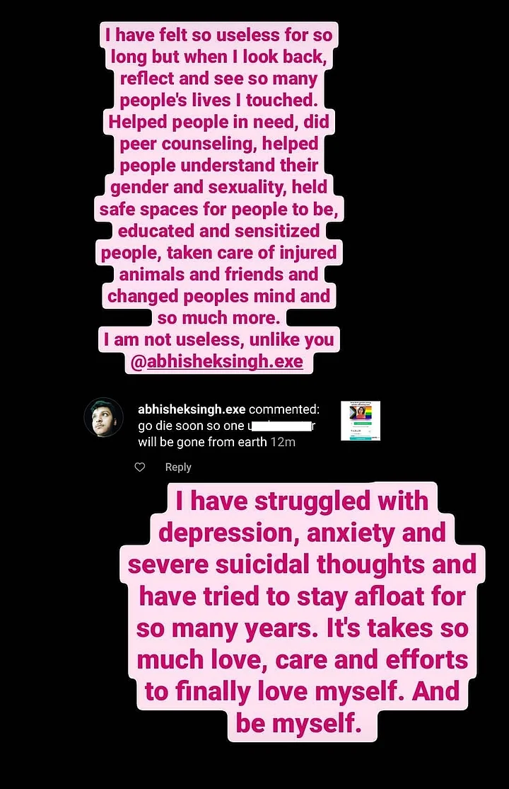 Rishikesh, on the other hand, is not hesitant about taking legal action. They are in fact consulting a lawyer to file a complaint against casteist and transphobic social media accounts. However, past experiences with the police don't inspire much confidence about whether “real action” will be taken.