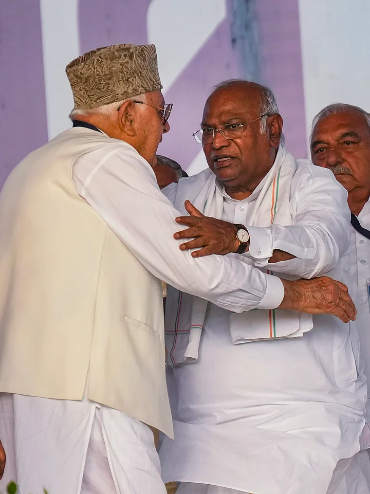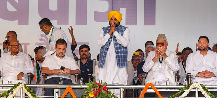 Top INDIA bloc leaders such as Congress' Mallikarjun Kharge, Rahul Gandhi, Sonia Gandhi as well as J&K National Conference chief Farooq Abdullah, Nationalist Congress Party (NCP-SCP) chief Sharad Pawar, Communist Party of India (Marxist) chief Sitaram Yechury, Trinamool Congress leader Derek O'Brien, Rashtriya Janata Dal (RJD) leader Tejashwi Yadav, and Punjab CM Bhagwant Mann are in attendance at the rally, among others.