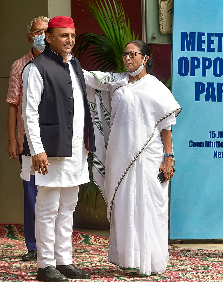 Banerjee was seen welcoming leaders personally, including PDP chief Mehbooba Mufti and SP chief Akhilesh Yadav.