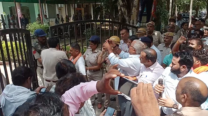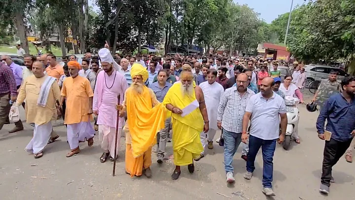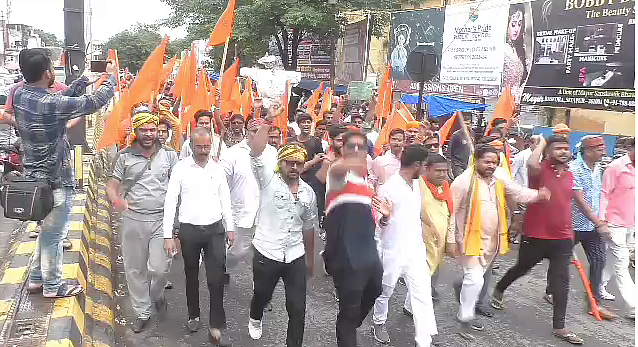 Members of several Hindutva outfits took out a march from Rewari's Rajiv Chowk to the SDM's office where they forcibly tried to enter the premises to submit a letter addressed to the state's home minister.