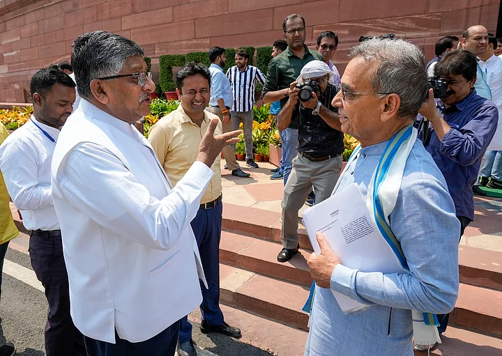 AAP MPs Sanjay Singh and Raghav Chadha also had a heated exchange with Rajya Sabha Chairperson Jagdeep Dhankar over the Delhi Ordinance Bill.