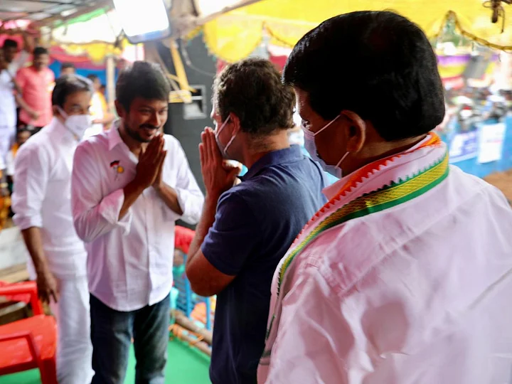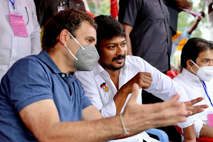 With the Assembly elections in Tamil Nadu just a few months away, Congress leader Rahul Gandhi on Thursday, 14 January, celebrated Pongal in Avaniyapuram, Madurai, and attended a Jallikattu event with Dravida Munnetra Kazhagam (DMK) President MK Stalin's son and actor Udhayanidhi.