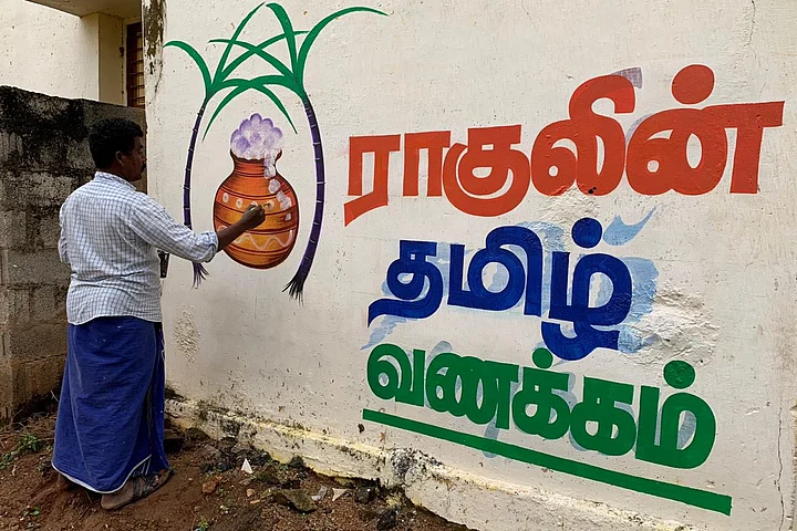 According to IANS, the tag line for Gandhi's visit was 'Rahulin Tamizh Vanakkam'.(Rahul’s greetings to Tamil Nadu).