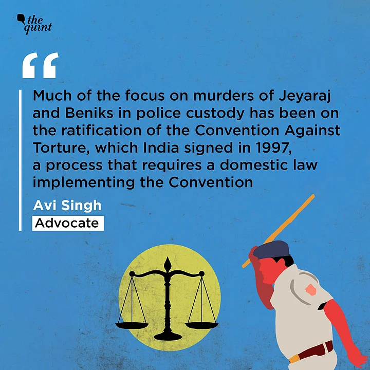 Much of the attention on the tragic murders of Jeyaraj and Beniks in police custody has been focused on the ratification of the Convention Against Torture, which India signed in 1997, a process that requires a domestic law implementing the Convention. Even beyond the ratification, the proscription of torture, and the ancillary principle of non-refoulement – which states that countries should not send someone back to a country where they may be tortured or persecuted, is now universally recognised as customary international law. That it has been 23 long years since India signed the Convention, and is only one of 9 countries that has not done so, is indeed a problem.