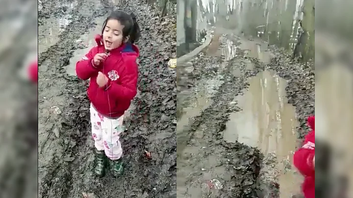 Watch: Young Girl Turns Reporter to Show Poor Condition of Kashmir Roads
