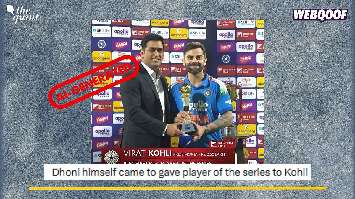 Gen-AI Image Showing Dhoni Giving Kohli Player of Series Award Viral as Real