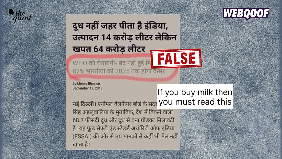 No, WHO Did Not Say 87% of Indians Will Get Cancer From Adulterated Milk by 2025